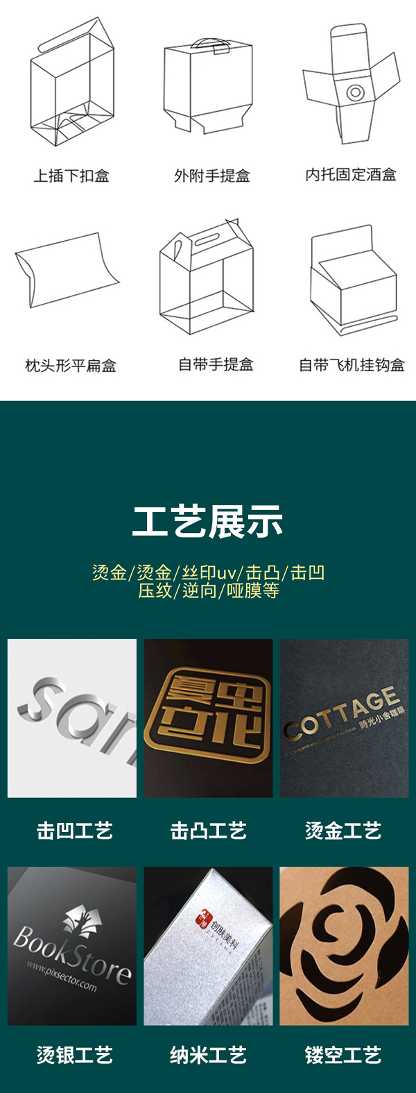 常用工藝:覆膜(啞膜、光膜)、壓紋、凹凸印、局部uv、燙銀、燙金、印專色(PANTONE色)、鏤空、鐳射、打孔、疊印、絲網(wǎng)印、透印、過(guò)光油、啞油等